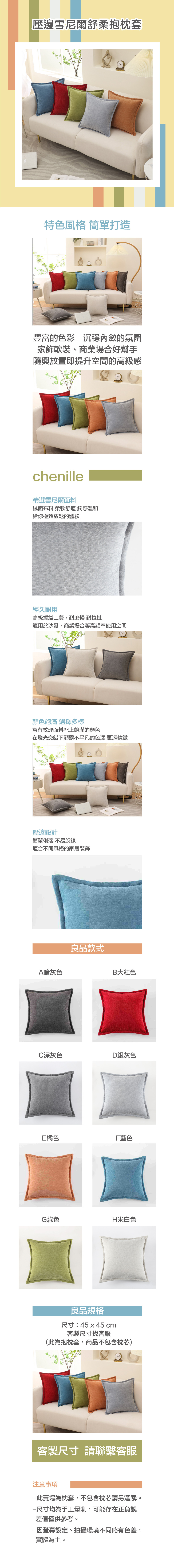 壓邊雪尼爾舒柔抱枕套